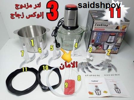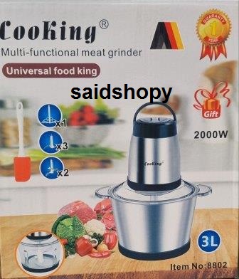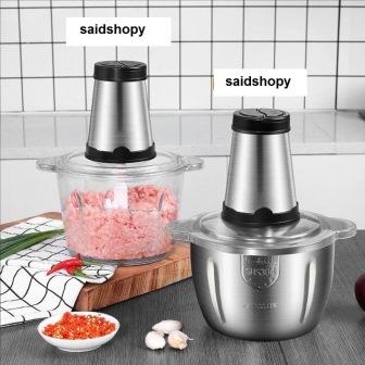 مطحنة اللحم والخضروات الكهربائية أكثر ملاءمة للاستخدام المنزلي ، وعاء من الاينوكس و الثاني زجاجي بسعة 3 لتر
