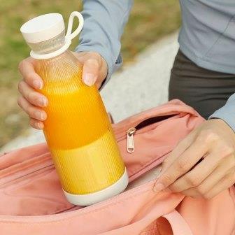 قابل لإعادة الشحن ومحمول يحتوي على بطارية مدمجة تبلغ 1400 ملم في الساعة. يمكن شحنه بالكامل ويمكن أن ينتج ما يصل إلى 15 كوبًا من العصير